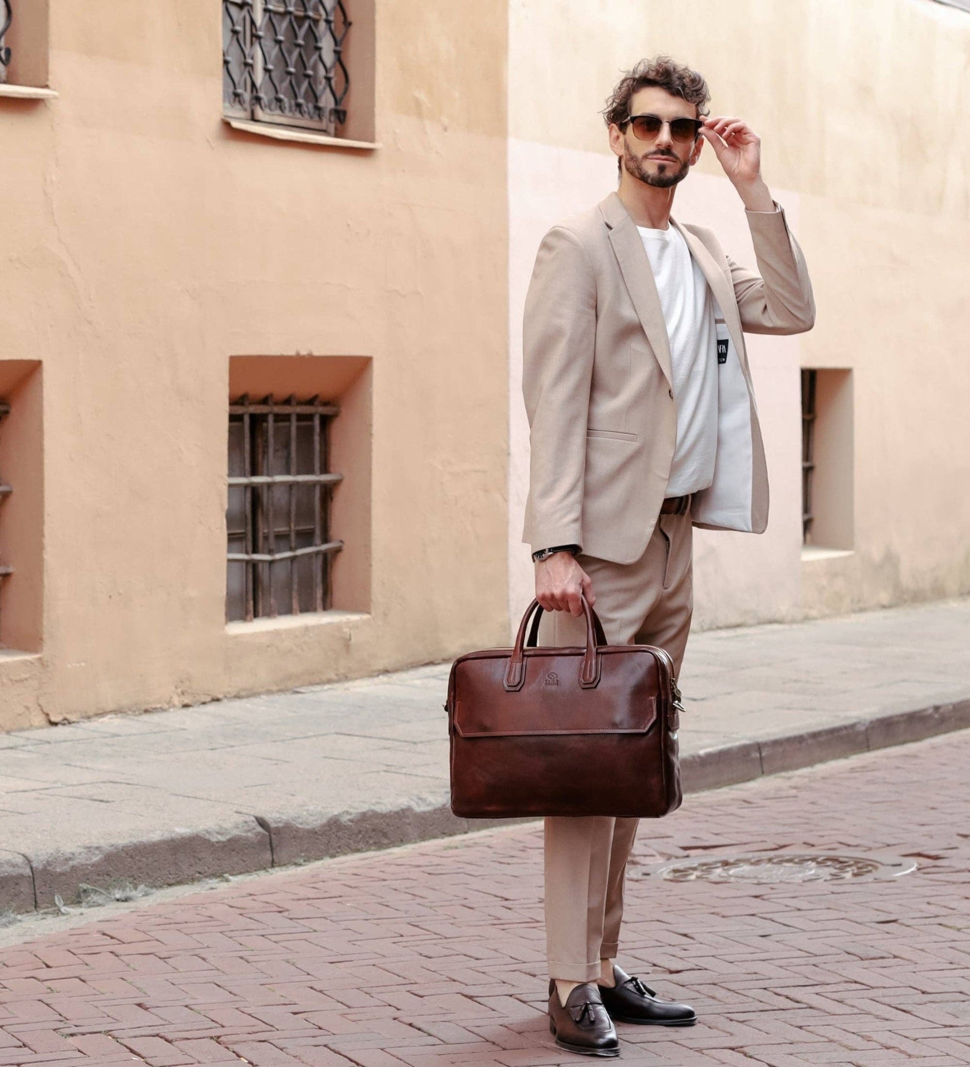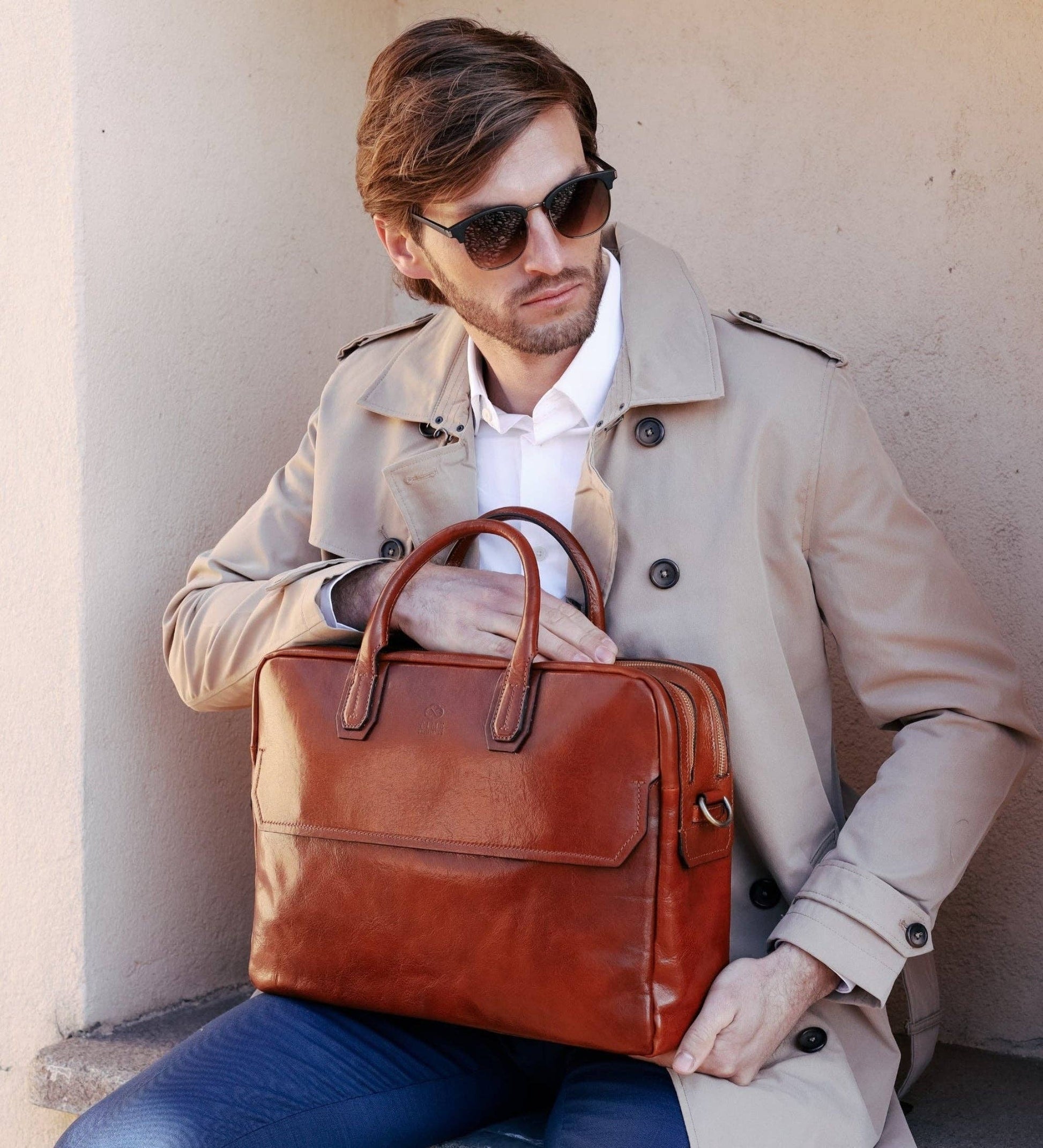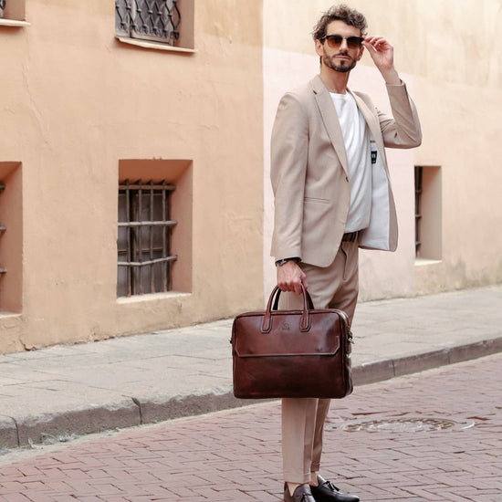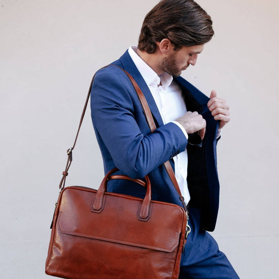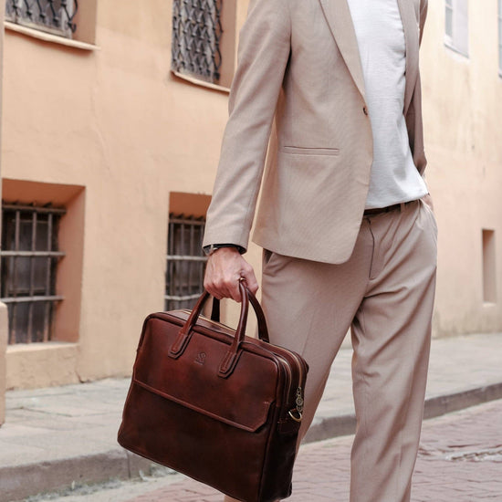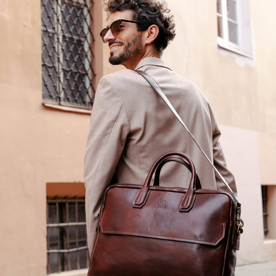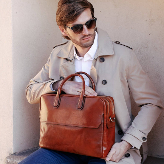 Large Leather Briefcase Laptop Bag - Nostromo
