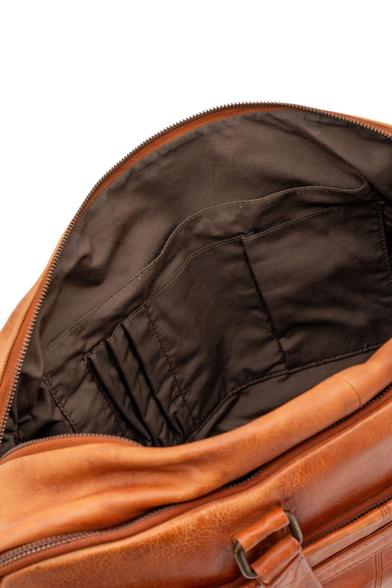 "Secure Work Bag": The flap closure, combined with zippered compartments, offers enhanced security for your belongings.