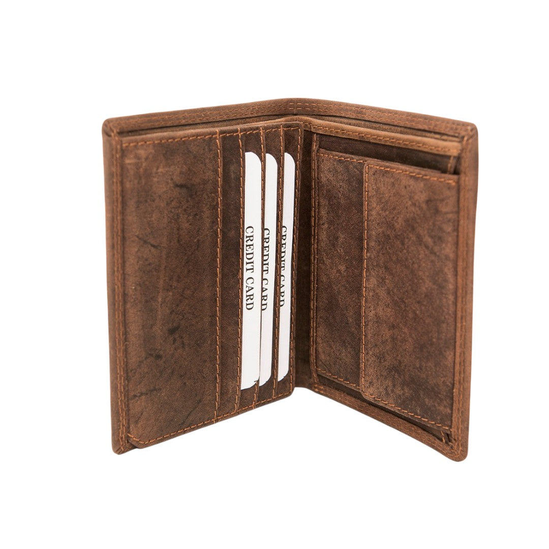 Crafted from premium full-grain leather, this vertical slim wallet is the ideal everyday essential for those who prefer sleekness with substance. With its streamlined silhouette and natural distressed finish, it fits easily into any pocket while keeping your most important cards close at hand.