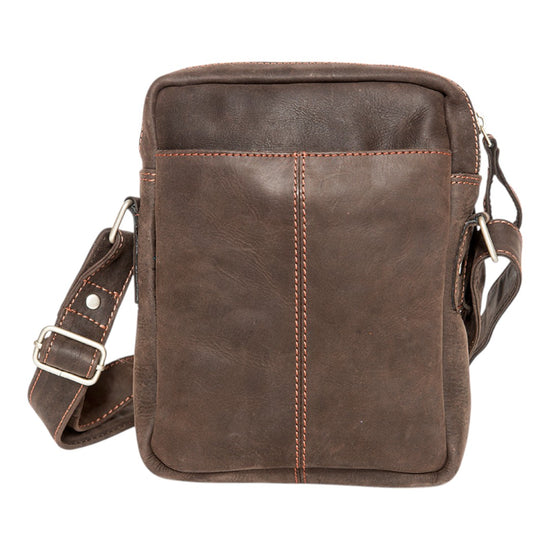Slim, rugged, and made to move, The Drifter is a vertical leather crossbody bag for life on the go. The full flap design gives it a clean, minimalist look, while the zip-secured interior keeps essentials safe and organized. Finished in vintage-style leather with contrast stitching, it's the perfect everyday companion for those who travel light but never blend in.