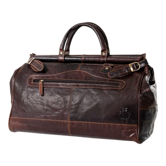 Una bolsa de viaje de cuero atemporal que realza cada viaje, ya sea una reunión de negocios en Milán o una escapada de fin de semana. Hecha a mano para el explorador moderno.