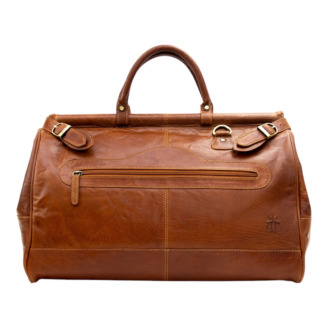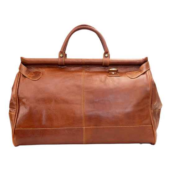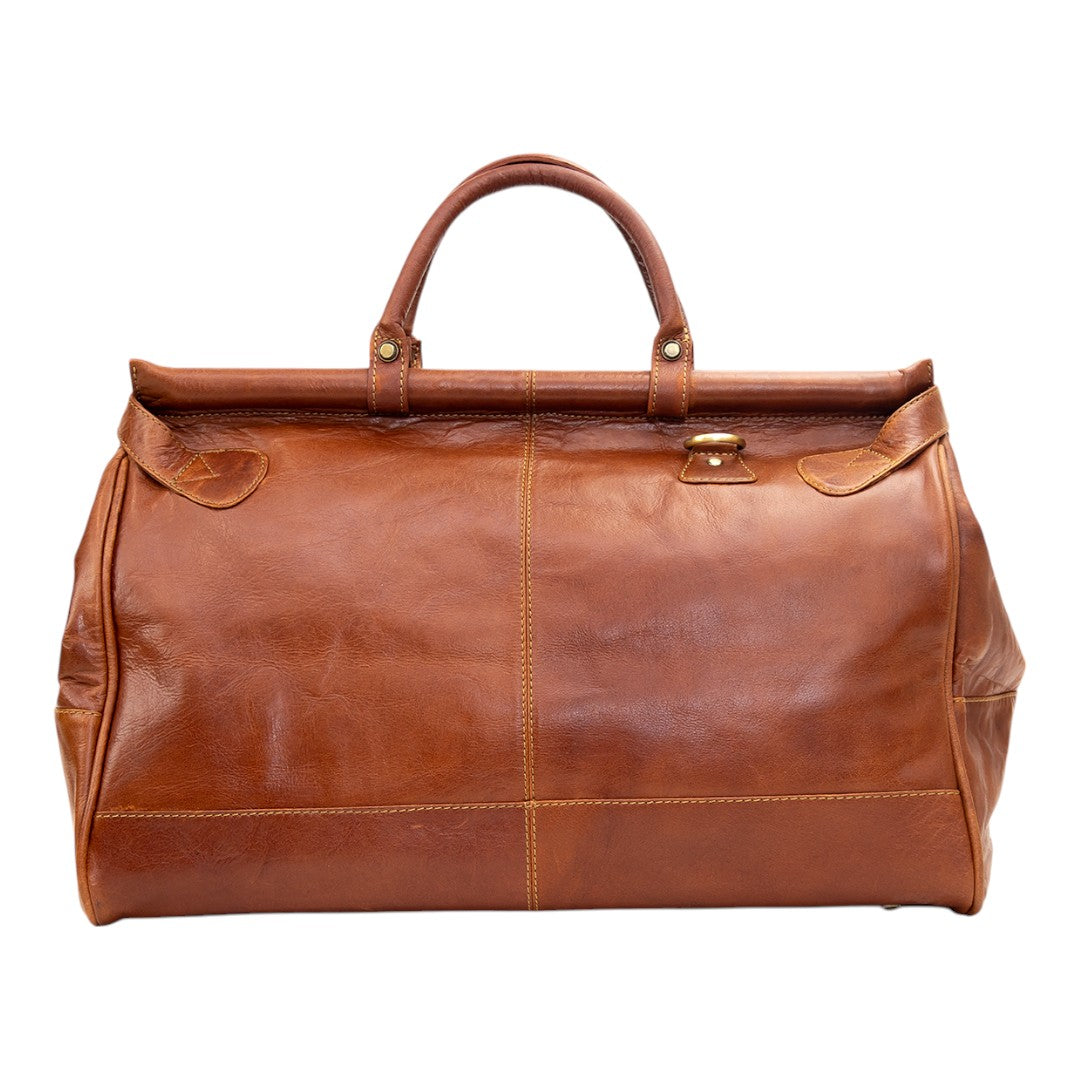 Donde la artesanía tradicional se une a las necesidades de viaje modernas. Este bolso de fin de semana de piel flor está diseñado para quienes se mueven con estilo. Disponible en dos tonos clásicos: marrón coñac y marrón oscuro intenso, es el compañero ideal para escapadas de fin de semana, viajes cortos de negocios o como un lujoso bolso de gimnasio.