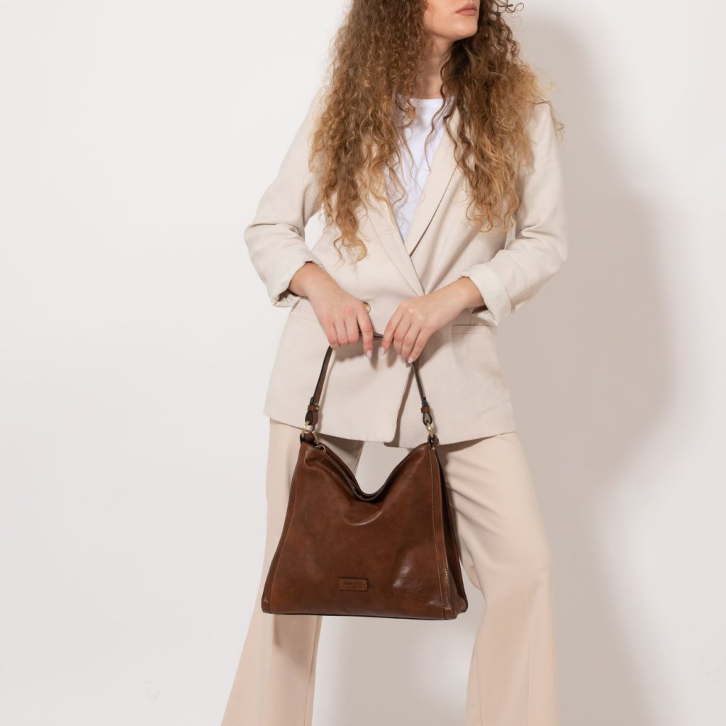 Con su diseño atemporal y su construcción duradera, este bolso hobo de cuero es el accesorio ideal para el uso diario, combinando sin esfuerzo la funcionalidad con un estilo sofisticado.