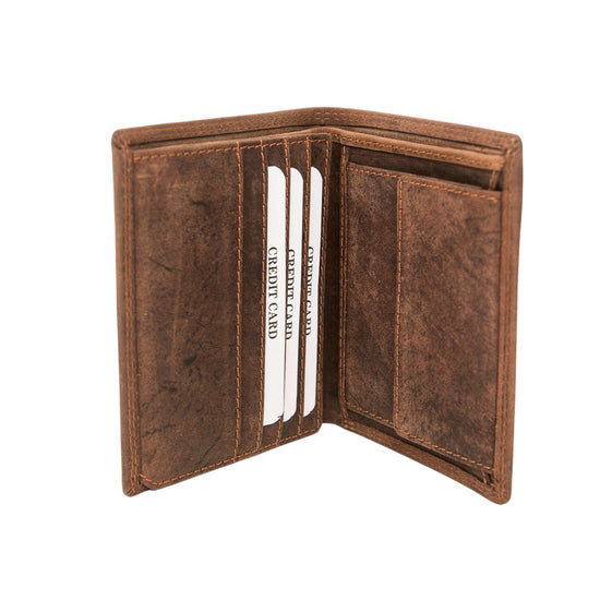 Elaborada en piel flor de primera calidad, esta delgada cartera vertical es el accesorio esencial ideal para el día a día de quienes buscan elegancia con personalidad. Con su silueta estilizada y su acabado desgastado natural, cabe fácilmente en cualquier bolsillo y mantiene tus tarjetas más importantes a mano.