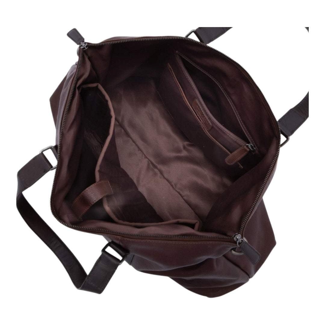 Fabricada en piel flor de primera calidad en un intenso color marrón chocolate, esta bolsa de fin de semana ofrece un amplio espacio y un estilo atemporal. Perfecta para escapadas cortas, viajes de negocios o para llevarla a diario con estilo, combina una construcción de piel suave con una organización práctica.
