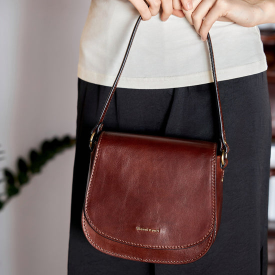 Mejora tu estilo diario con el Chestnut Saddle Bag , una combinación perfecta de funcionalidad y elegancia atemporal. Este bolso, confeccionado en piel de primera calidad en un intenso tono castaño, cuenta con un acabado suave y costuras meticulosas que resaltan su diseño clásico. La solapa curva añade un toque sofisticado, mientras que la correa ajustable garantiza un ajuste cómodo para cualquier ocasión. Ya sea que te dirijas a la oficina o salgas a tomar un brunch el fin de semana, el Chestnut Saddle Bag ofrece un amplio espacio para tus artículos esenciales mientras mantiene un aspecto elegante y refinado. Esta versátil pieza es un complemento esencial para cualquier armario, que pasa sin esfuerzo del día a la noche.