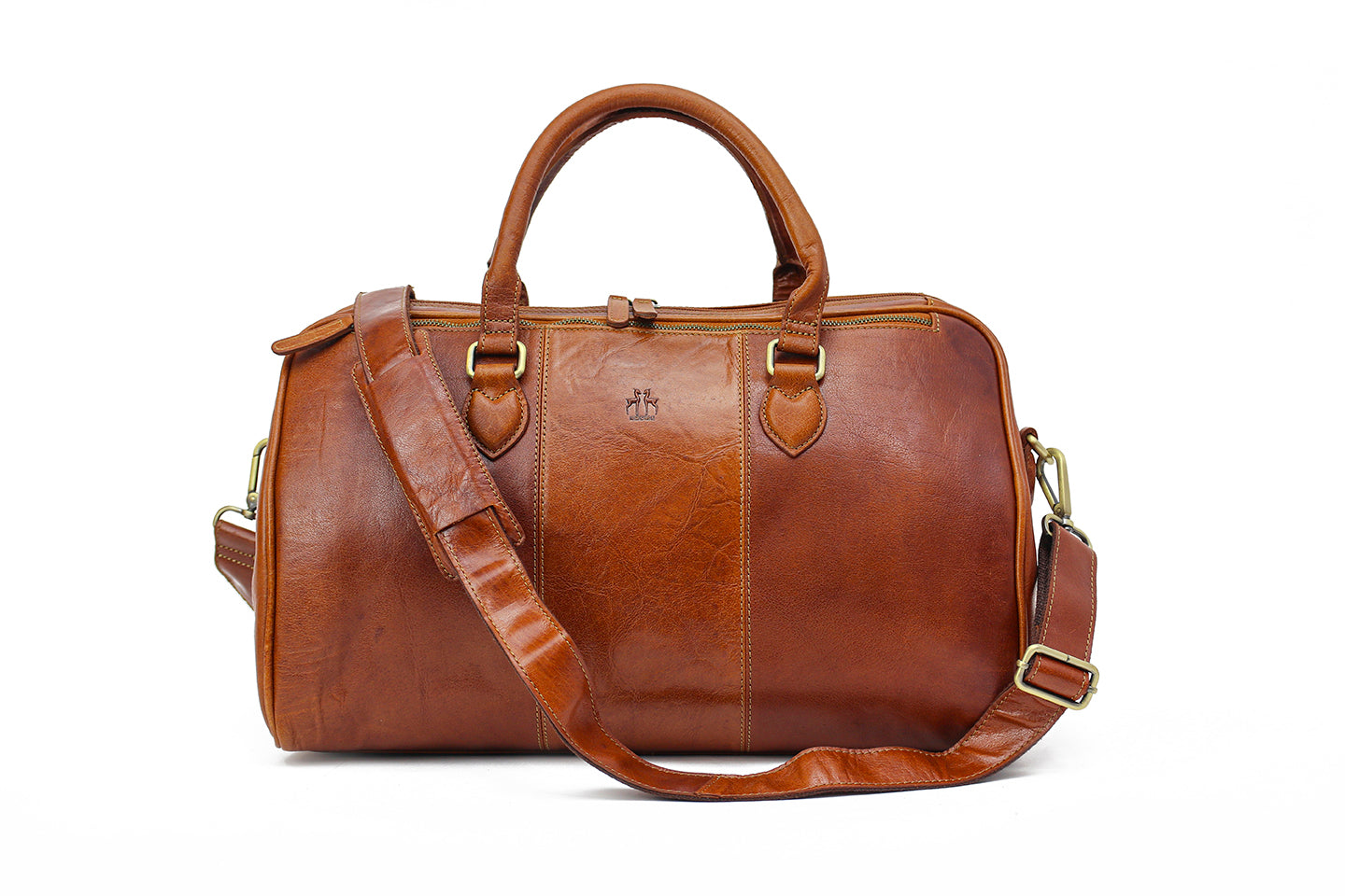 Herrajes en tono latón y costuras reforzadas para un uso prolongado.