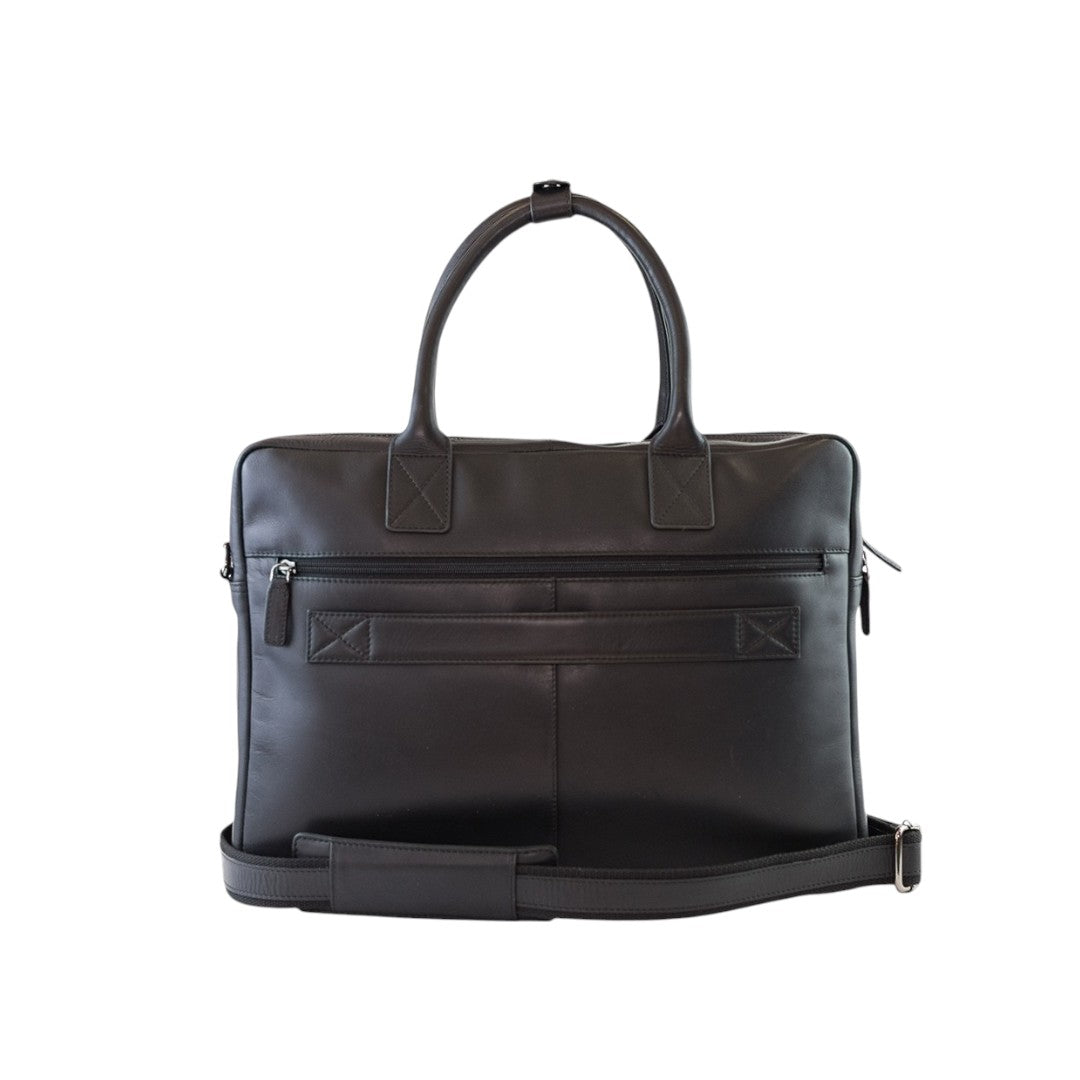 This sleek black leather briefcase is crafted for those who value refined simplicity and everyday performance. Made from 100% full-grain leather, it combines a clean silhouette with durable craftsmanship — perfect for business meetings, travel, or daily office use.